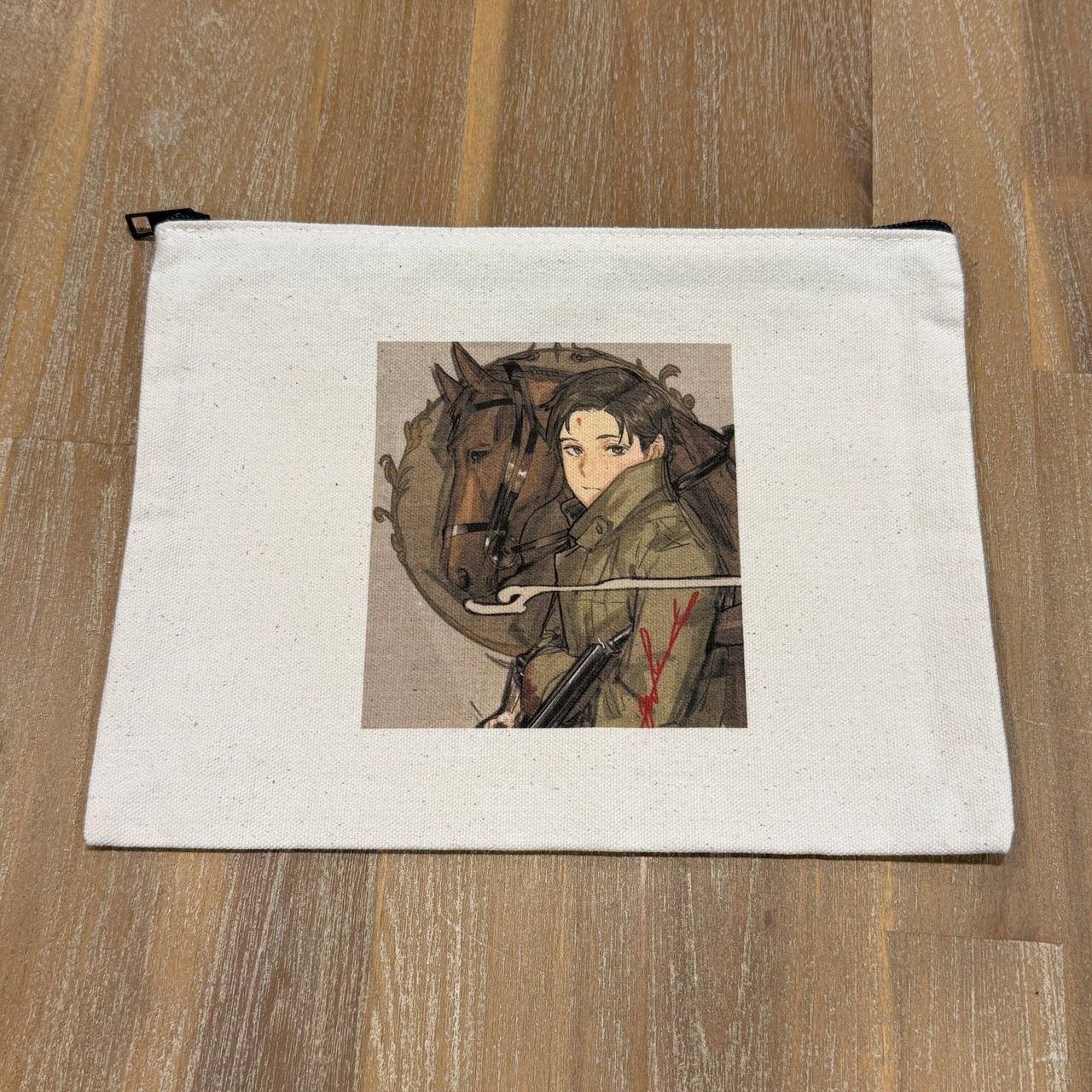 A5サイズのノートやタブレット端末がすっぽり入る大きなポーチです。